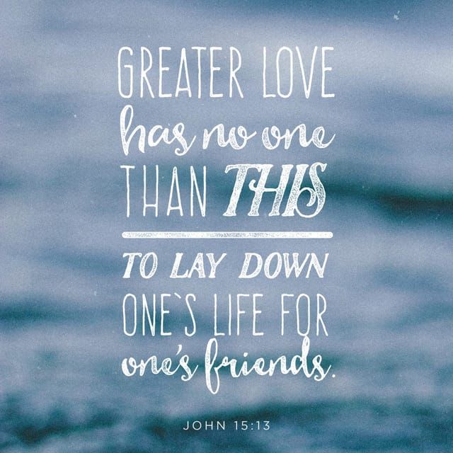 Greater love hath no man than this, that a man lay down his life for his friends.