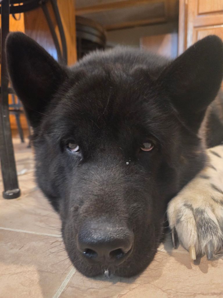 We drive several hours away, further than we had ever traveled before. The ride, while long, was filled with excitement anticipation. Dad hopped out of the vehicle first and done all the talking. A few moments later you were brought close to meet us for the first time. I was happy to see that you no longer looked like you had a droopy face, but boy was you big! 12 weeks old and you were already a whooping 20 lbs. Black and white fluffy hair covered your body and your belly barley missed the ground when you walked. You were the cutest fluffy ball I had ever seen. We all feel instantly in love and brought you home to be our forever dog!
